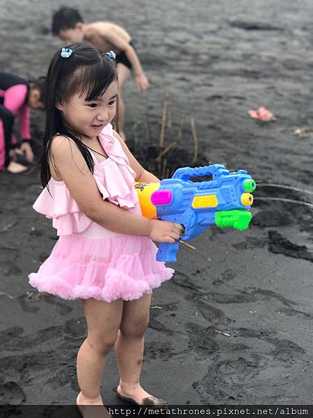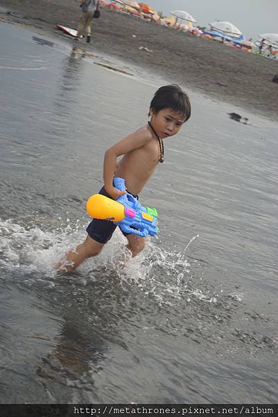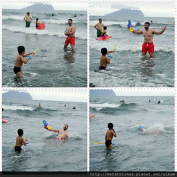 從餐廳出來往旁邊走,大概不到五分鐘就可以碰到沙灘了,有Tr. Marco一起來海邊玩真是太好玩了,安格斯拿出水槍和老師展開激烈槍戰,MARCO實在很厲害演得超像的,雖然只是在玩,卻在海裡翻滾玩得超級認真,
