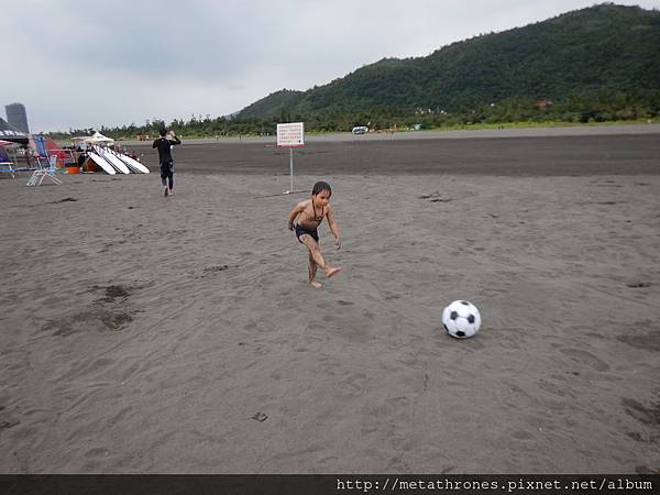 接下來,老師開始帶頭踢起沙灘足球,只見安格斯一下子踢球一下子躺沙裡,追球對他來說還是很累的樣子XD